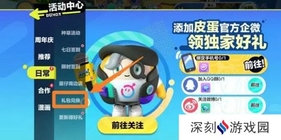 3、然后玩家就是可以来到【日常】的选项中,在里面是找到【礼包兑换】,玩家是需要点击进入。
