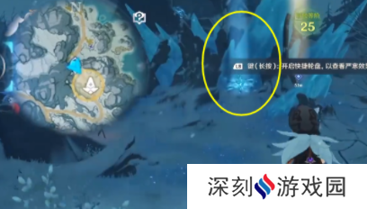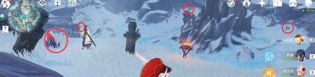 4、注意,拿着深赤之石的时候,不要被怪打了,不然会失效,建议大家先把周边的怪物,清理掉再拿,有个在丘丘霜王的旁边。